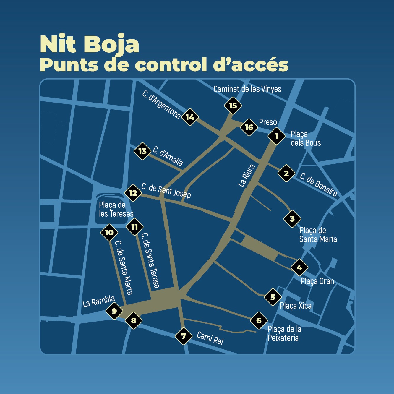 Per garantir el bon funcionament de la nit, hi haurà un dispositiu de controls d’accés a la zona.